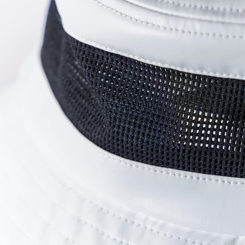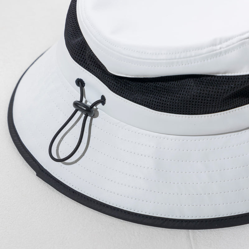 【撥水と通気性】ツバと頭頂部は撥水も兼ねているラディクール生地で、ボディはメッシュ切替で抜群の通気性◎