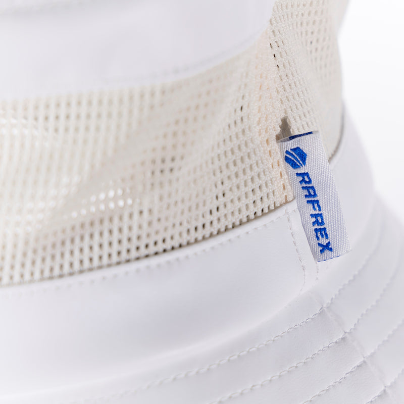 【撥水と通気性】ツバと頭頂部は撥水も兼ねているラディクール生地で、ボディはメッシュ切替で抜群の通気性◎