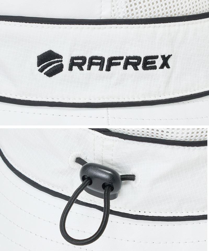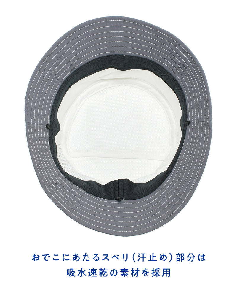 【撥水と通気性】ツバと頭頂部は撥水も兼ねているラディクール生地で、頭囲周りはは通気性のあるメッシュ生地を使用。