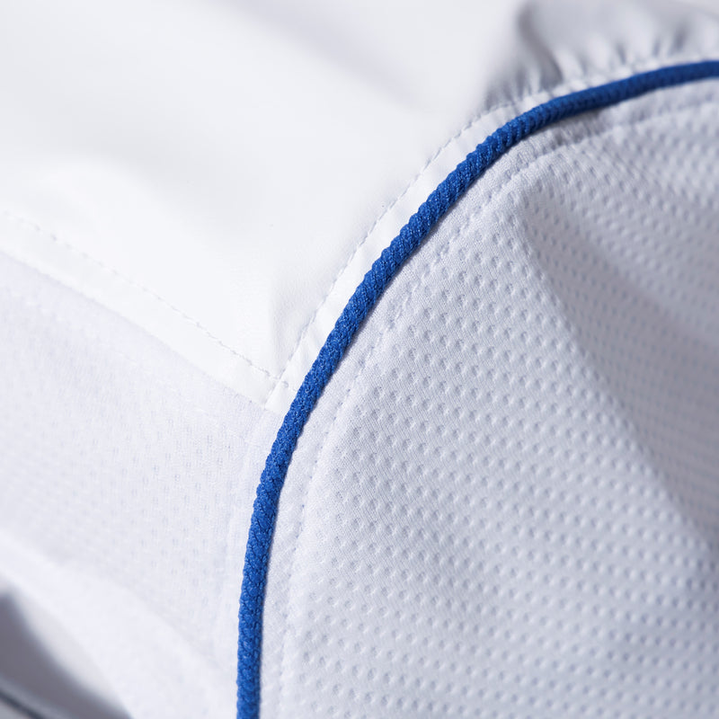 【撥水と通気性】ツバと本体中央部分は撥水も兼ねているラディクール生地で、両サイドは通気性のあるメッシュ生地を使用。