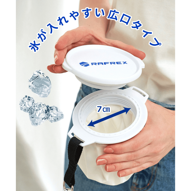 ●生地に結露・水滴が起こりにくい防湿仕様 ●ゴルフなどの野外で長時間活動スポーツの熱中症対策 ●ランニング、捻挫や打ち身、筋肉疲労などのアイシング用 ●大口径7㎝なので大きめの氷も楽に入ります。